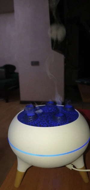 Combines ultrasonic mist, essential oil diffusion, and ambient light to reduce dryness, soothe allergy symptoms, and create a restful bedroom atmosphere.